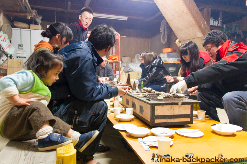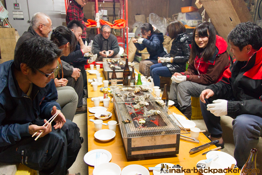 写真で見るNPO法人「田舎時間」の活動 <2016年3月: 牡蠣の水揚げ・剥き身作業> |
