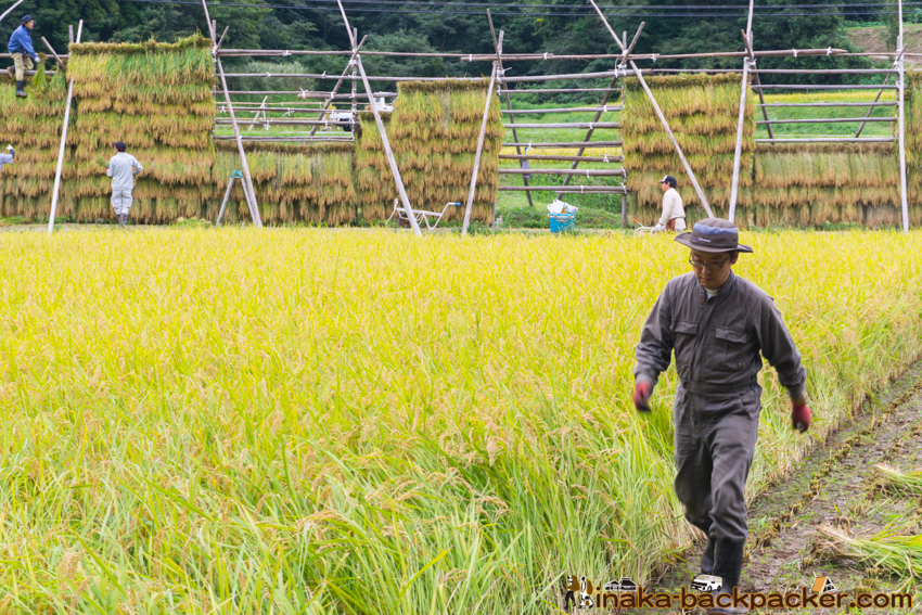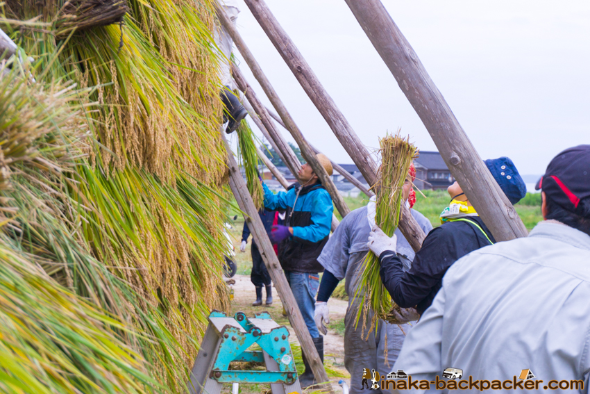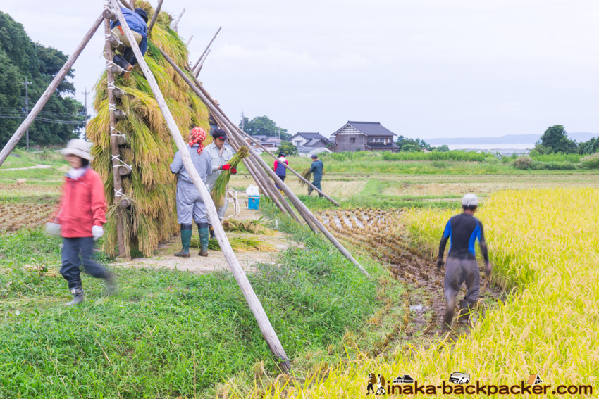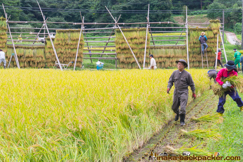 写真で見るNPO法人「田舎時間」の活動 <2017年5月:田植え><2017年9月: 稲刈り・稲架干し作業> |