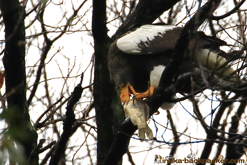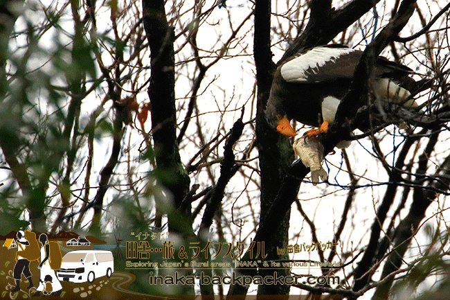 北海道・知床で流氷にのる大鷲(オオワシ)については頻繁に耳にするだろう。 そのオオワシが本州/本土でも間近でみられることができる“とある”田舎の撮影スポットだ。